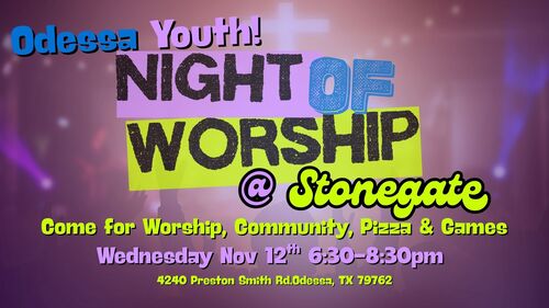 We’re heading to Stonegate in Odessa on Wednesday, November 12th for a Night of Worship from